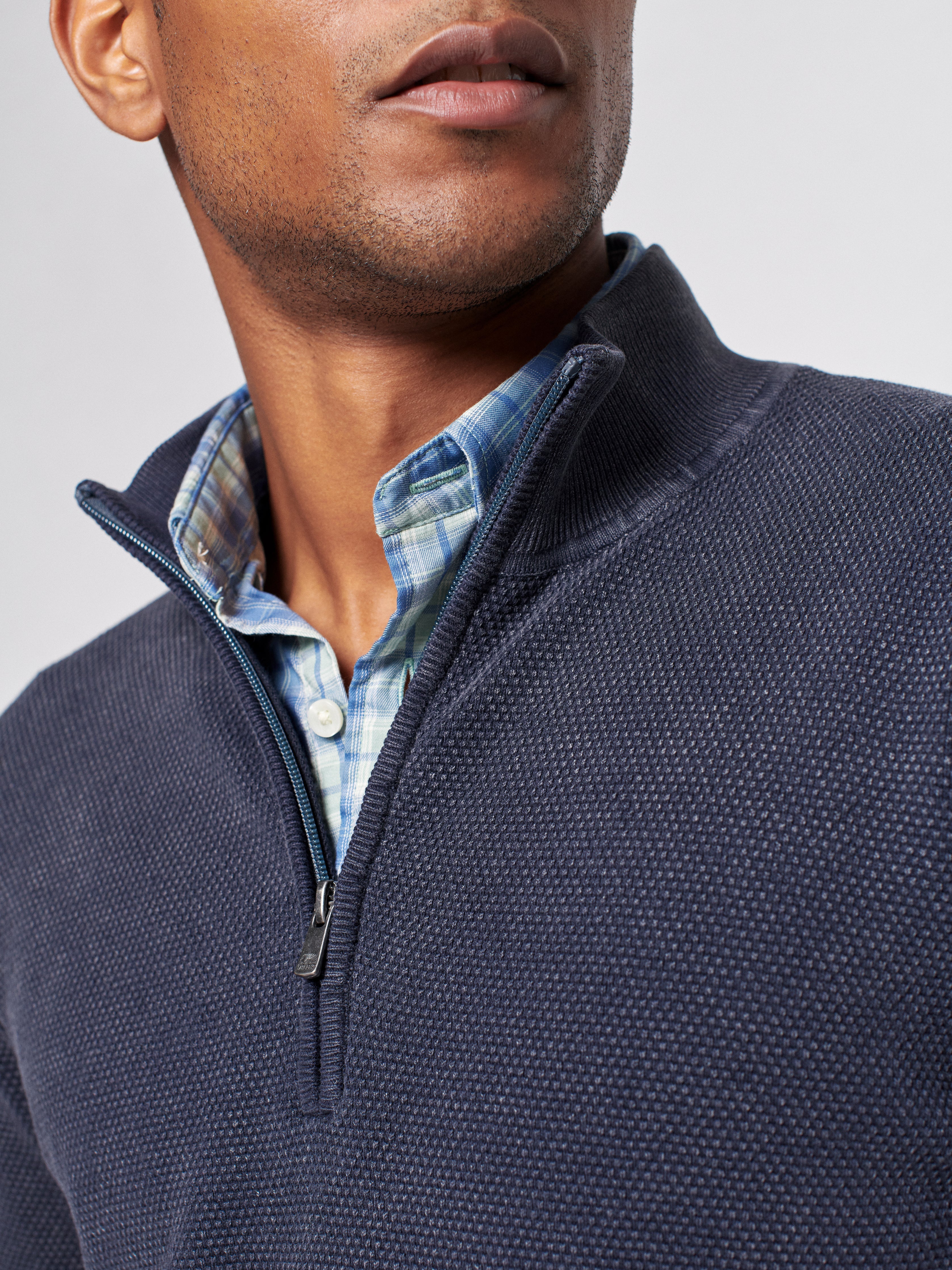 Get to know the Montego. It's the ultimate casual quarter zip made from an elevated, textured stitch of cashmere and cotton yarns. We garment dyed it for that sunwashed vintage look that wears like a sweatshirt with jeans, or reads a little more dressed up layered with a shirt and chinos.
